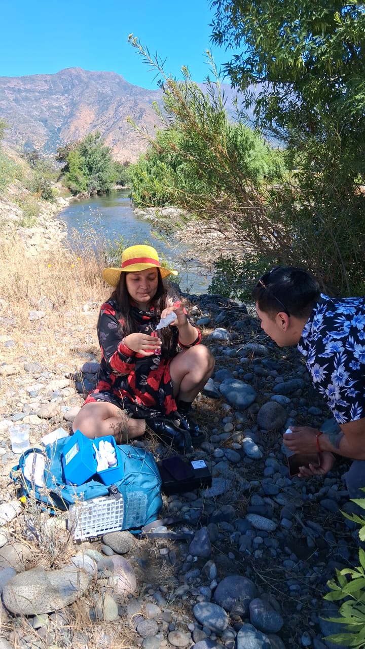 En octubre empezamos con capacitaciones en Concón, Quillota, Catemu, Putaendo y los Andes. Macarena Pérez y Justinne Rybertt, geólogas con varios años de experiencia monitoreando las aguas de la cuenca del río Aconcagua lideraron las capacitaciones en terreno, las que fueron acompañadas por reuniones online que daban oportunidades para apoyar a la localidad en la aplicación de la metodología, la logística, los instrumentos y la interpretación de los datos.